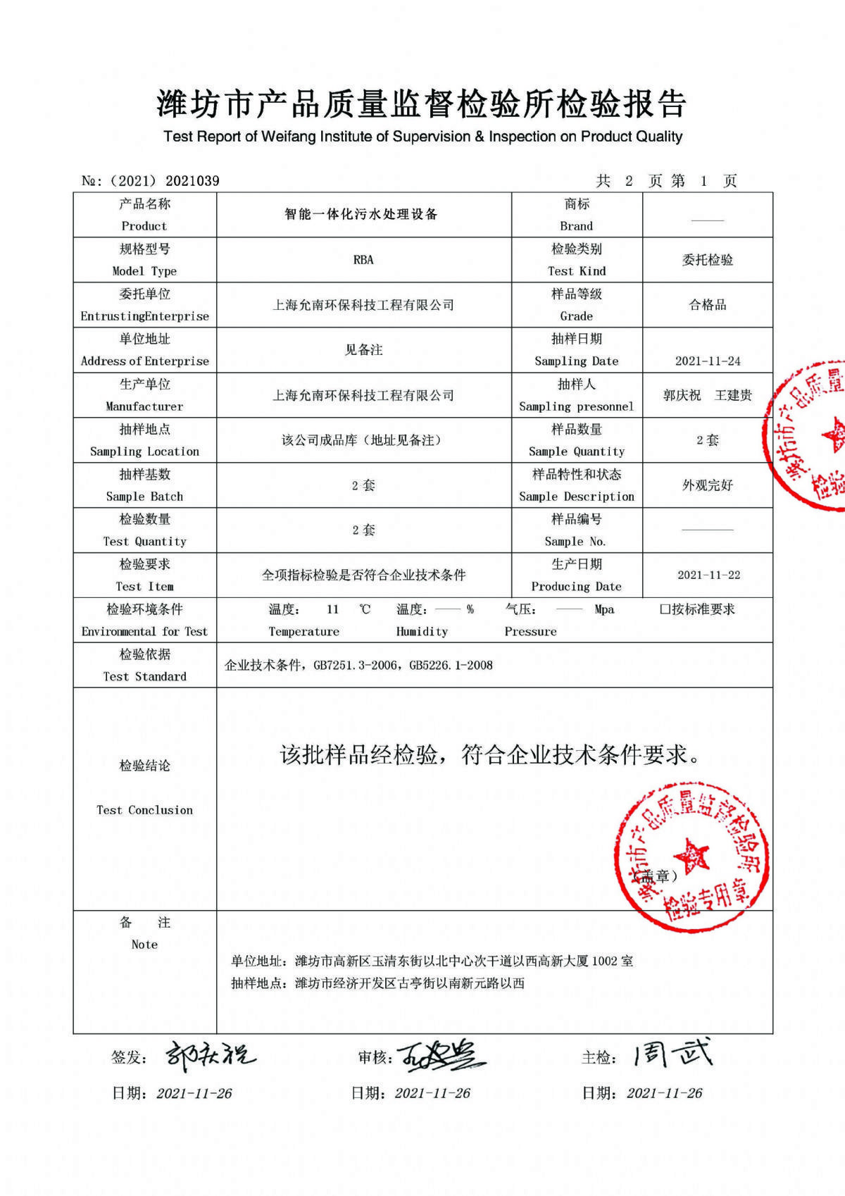 (盐雾报告)上海允南环保科技有限公司-装配式一体化泵站