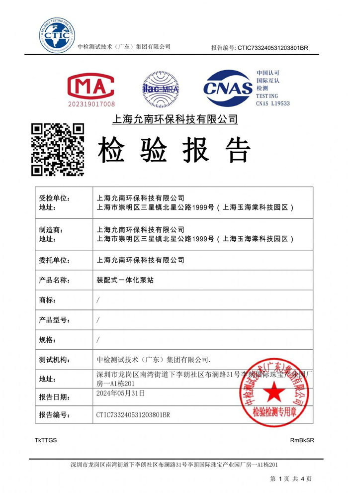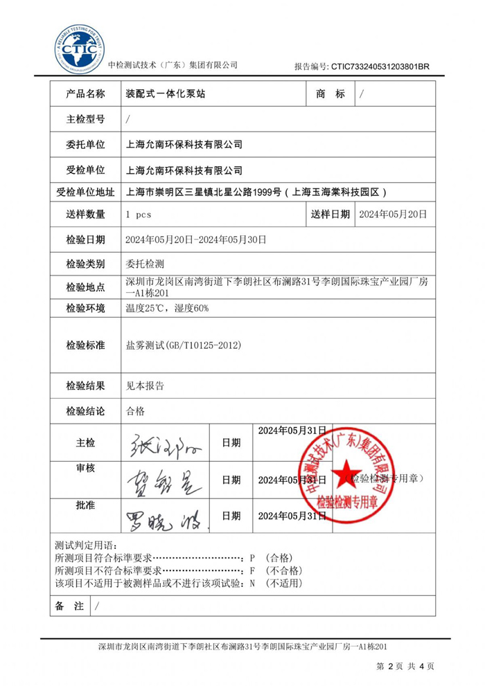 (盐雾报告)上海允南环保科技有限公司-装配式一体化泵站